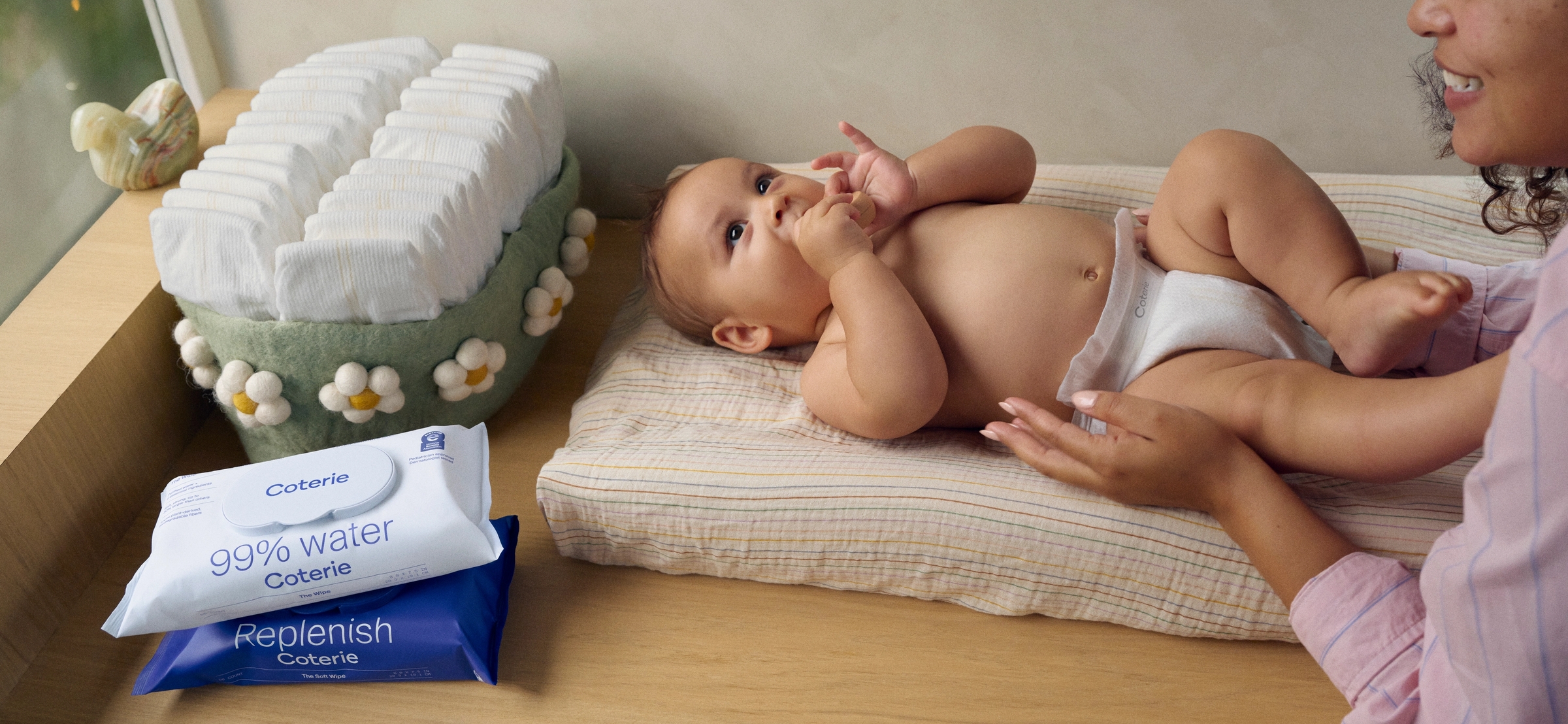 While many wipes are made with some form of plastic, Coterie wipes are made with 100% sustainably-sourced, plant-based, and plastic-free fibers. They should not be home composted if they’ve been used to clean feces as they may contain bacteria from gut flora. We can’t certify that the wipes will decompose as landfill environments can drastically vary.