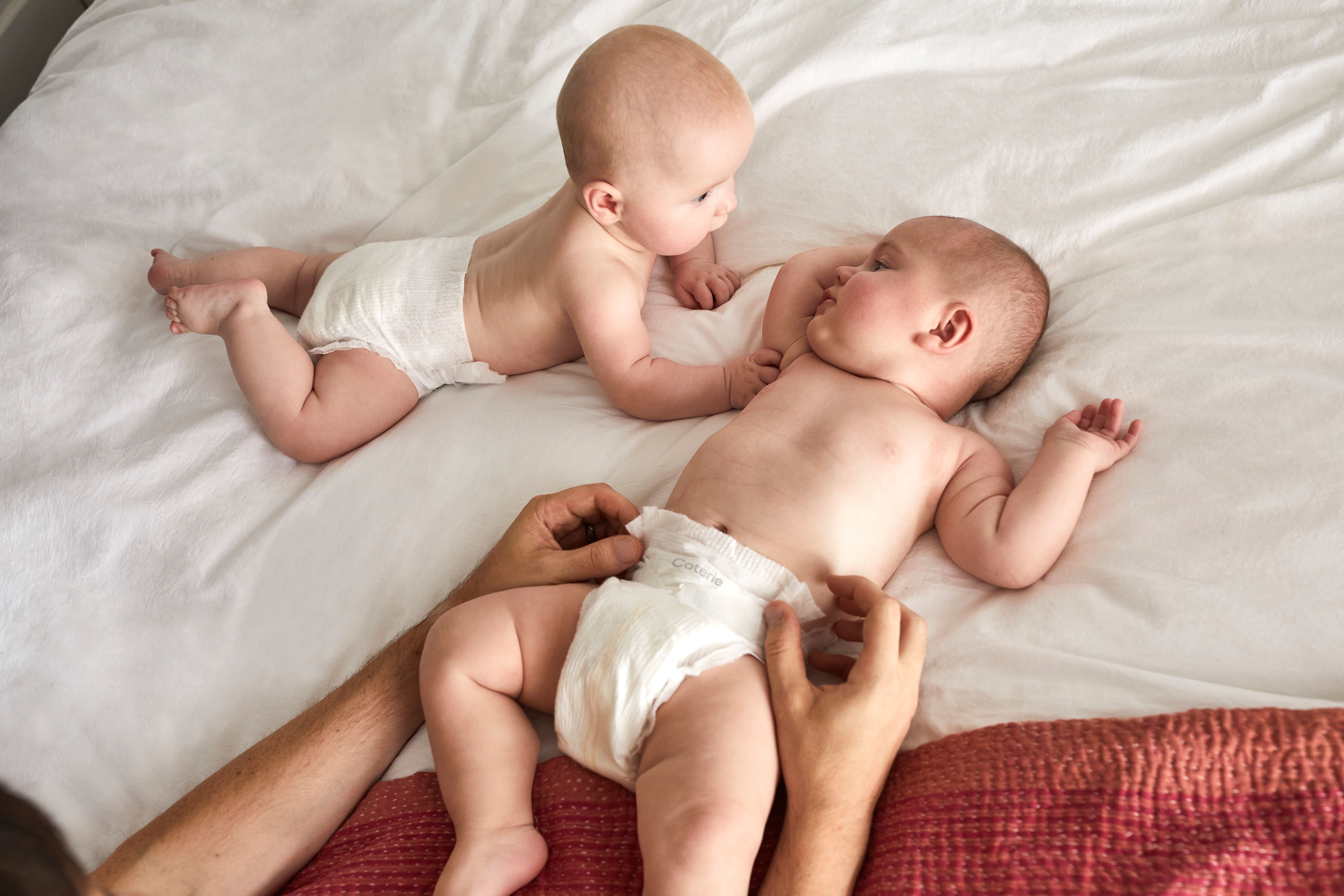 Coterie diapers hold over 16 oz of liquid (based on lab testing of size 4), and absorb it in seconds to keep skin dry and protect against leaks for up to 12 hours. Additionally, babies aren’t born with sleep-wake rhythms tied to day and night. So The Diaper provides premium softness and absorbency no matter when they wake, nap, or sleep for longer stretches.